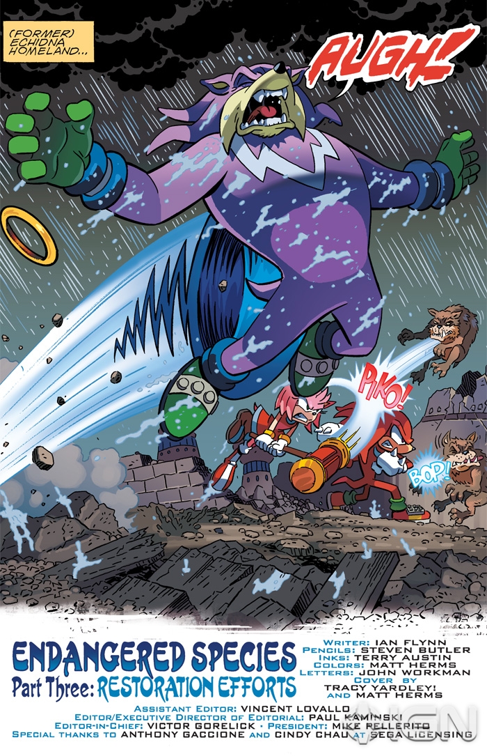 This issue marks part three of the Endangered Species arc, now widely controversial for the way it appeared to write out many beloved secondary characters, including many whose ownership were contested when Archie Comics sued former Sonic writer Ken Penders. At last check, that case still appears to be in a settlement phase.