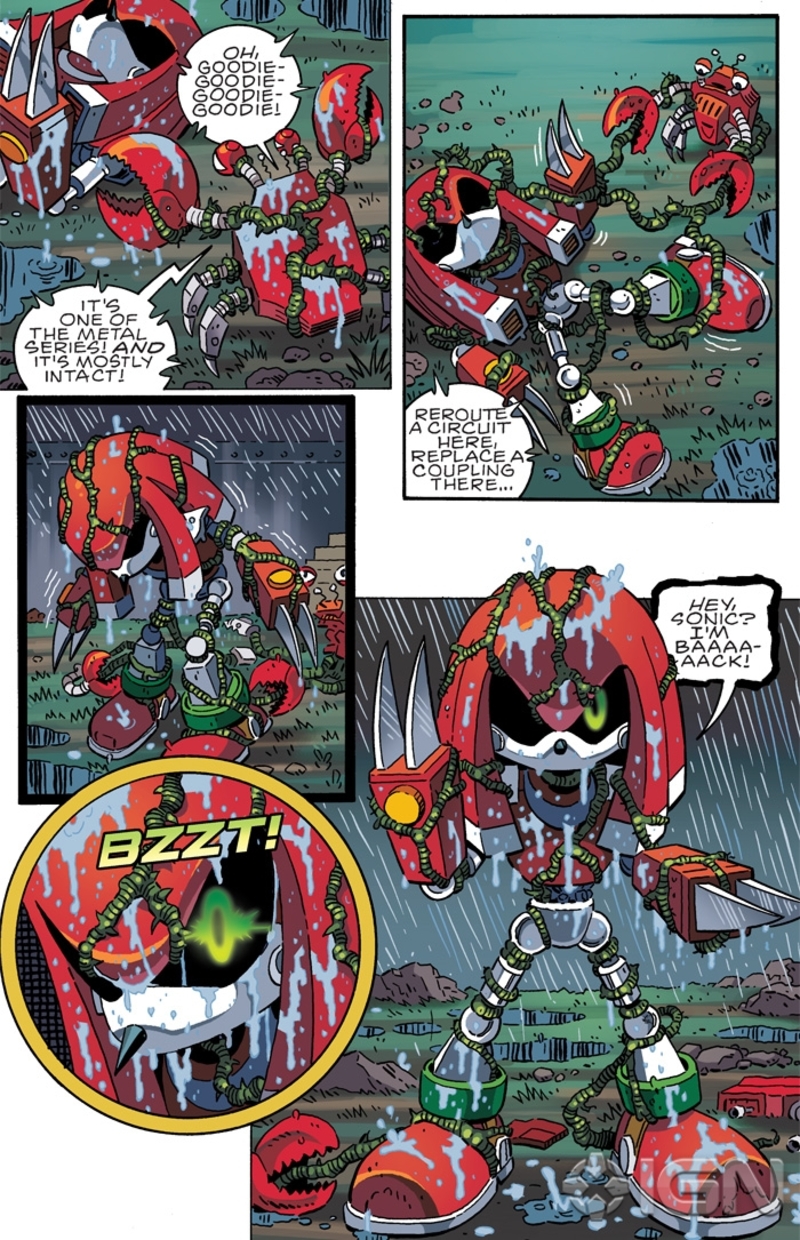 Take a look at the cover and the first five pages of Sonic #245, courtesy of IGN. We would normally precede that with a synopsis, but it appears the latest information we have on file does not account for the last-minute changes applied to this arc.