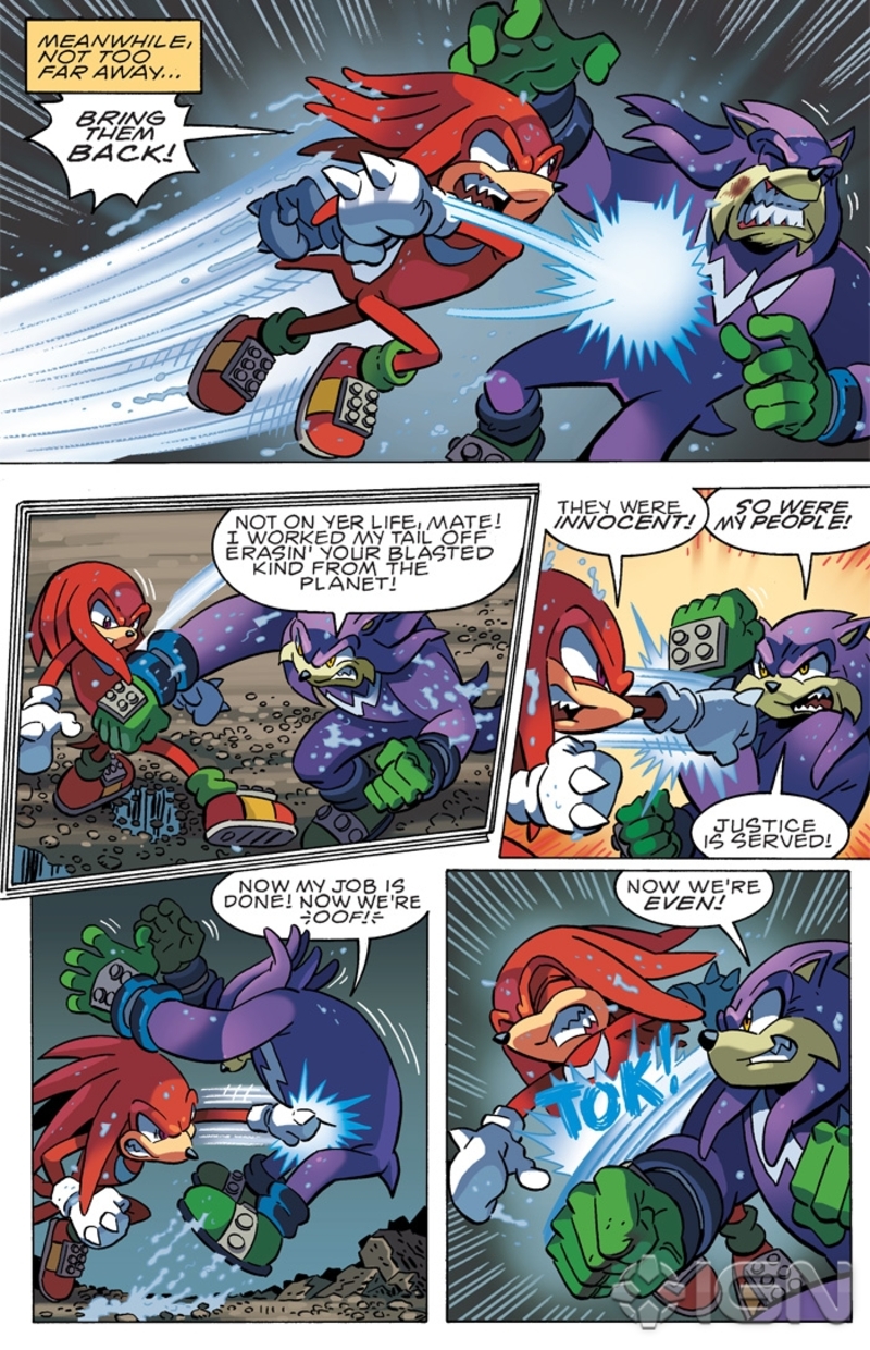 Love the comics, feel bad for knuckles, but love what happens in the end of this issue. Or the fact Sonic tells metal knuckles he is full of fail xD