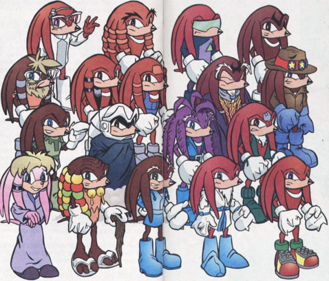 I just noticed how all of the echidnas are drawn EXACTLY THE SAME. Not just in style, but the same pose, the same posture, the same mouth direction, and even some of the same hand placements! It’s like Penders only managed to draw his best Knuckles drawing and then made 17 copies of it, only changing up the character-specific details. I’ll give him this, at least he knows how to handle a copy machine.
